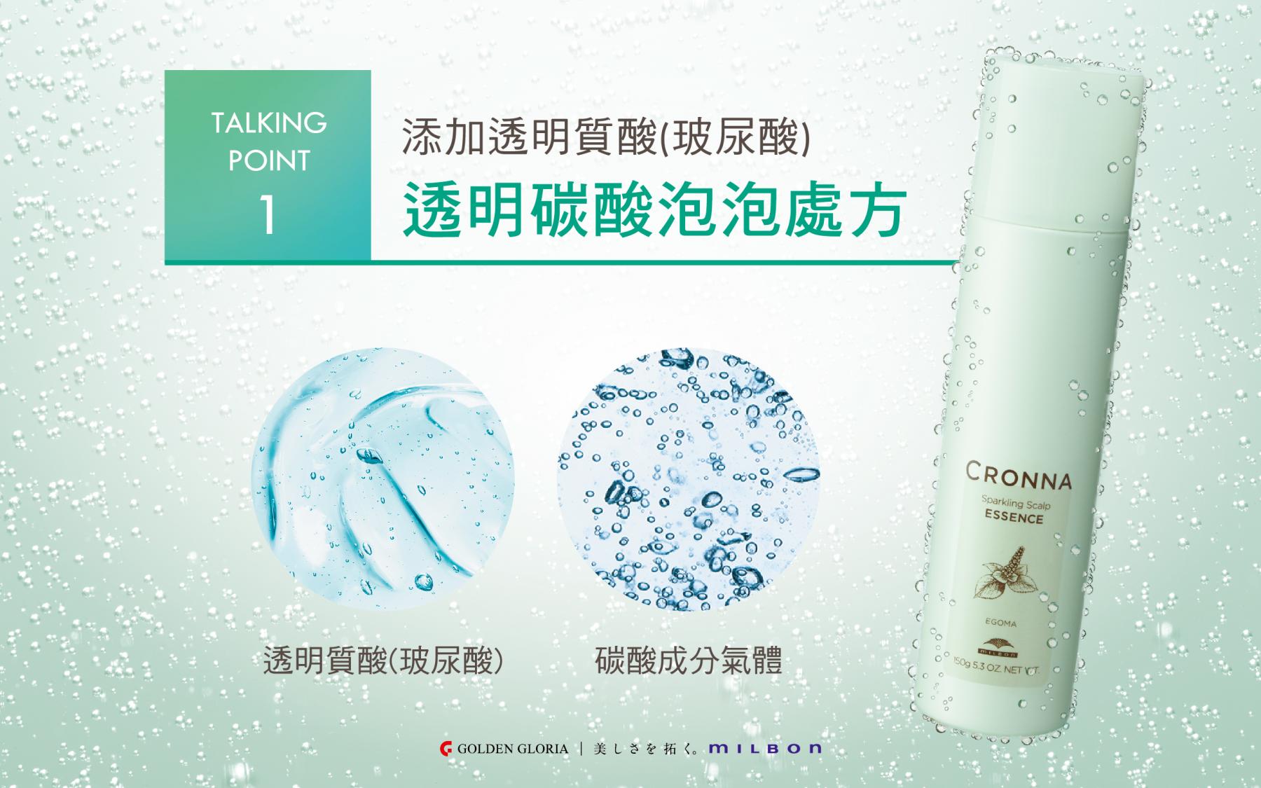 結合玻尿酸與碳酸氣體,構成透明碳酸泡泡,具有良好的保濕效果。