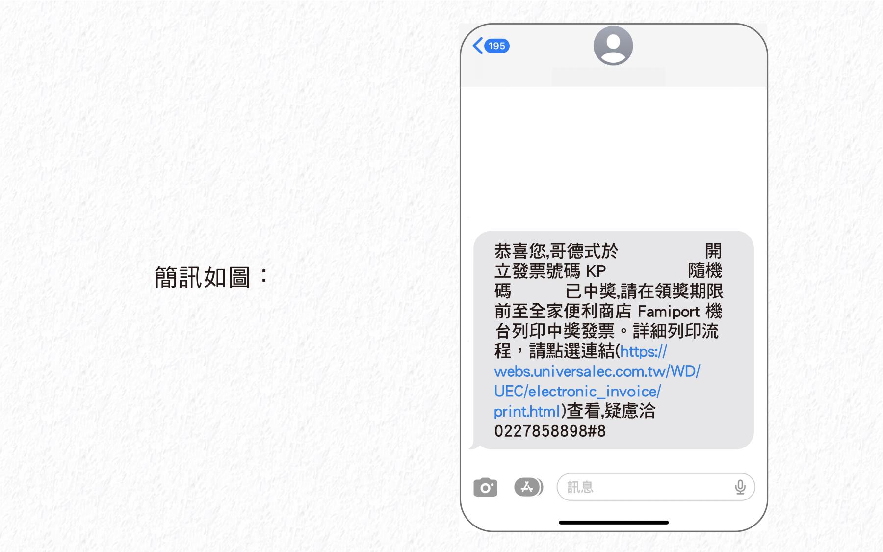 中獎者會透過手機收到一則簡訊,請點連結進入就會看見 FamiPort 領獎操作的流程,