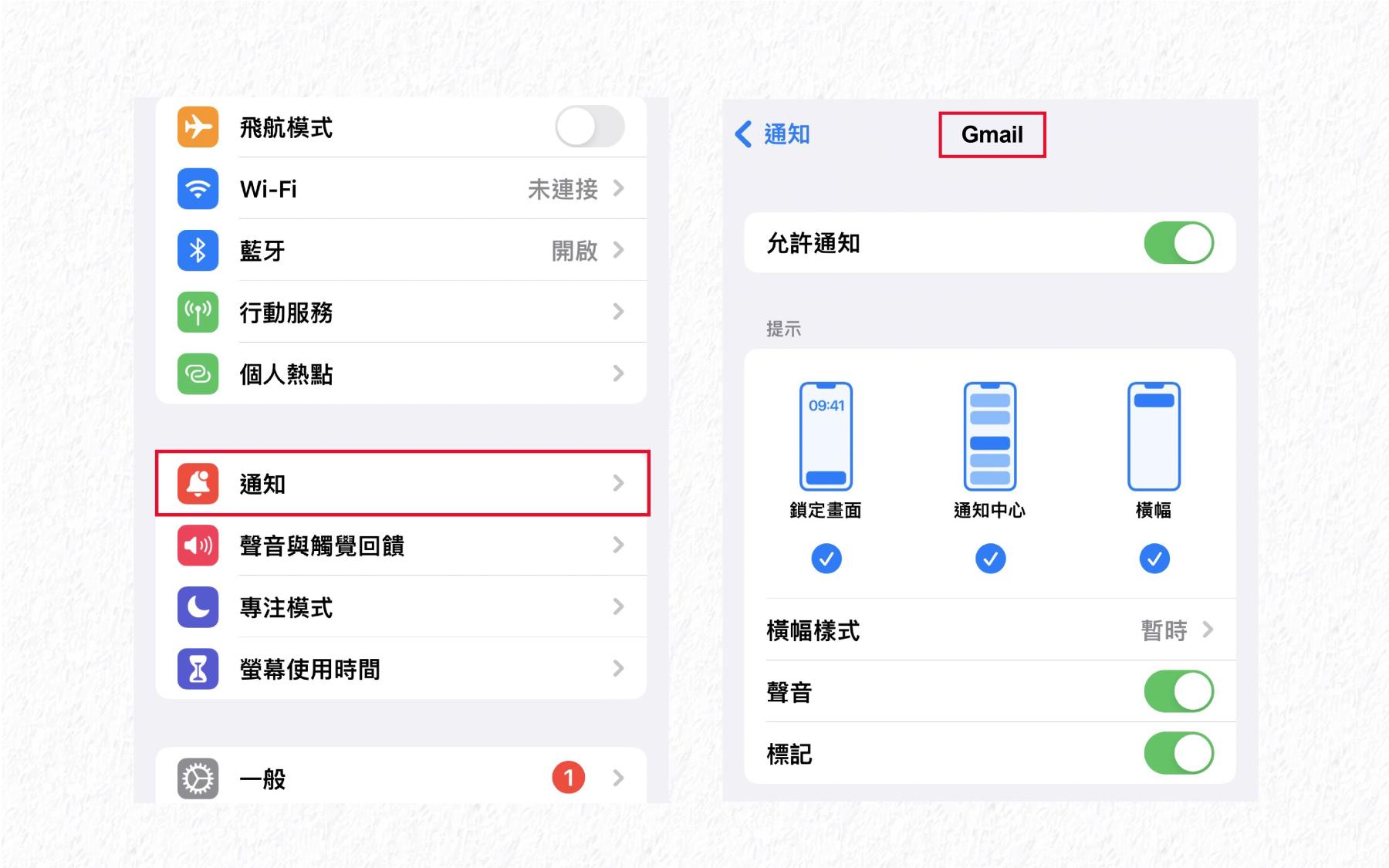 (1) iOS「正規」的方式,是到 iPhone 的「設定」>「通知」裡面,