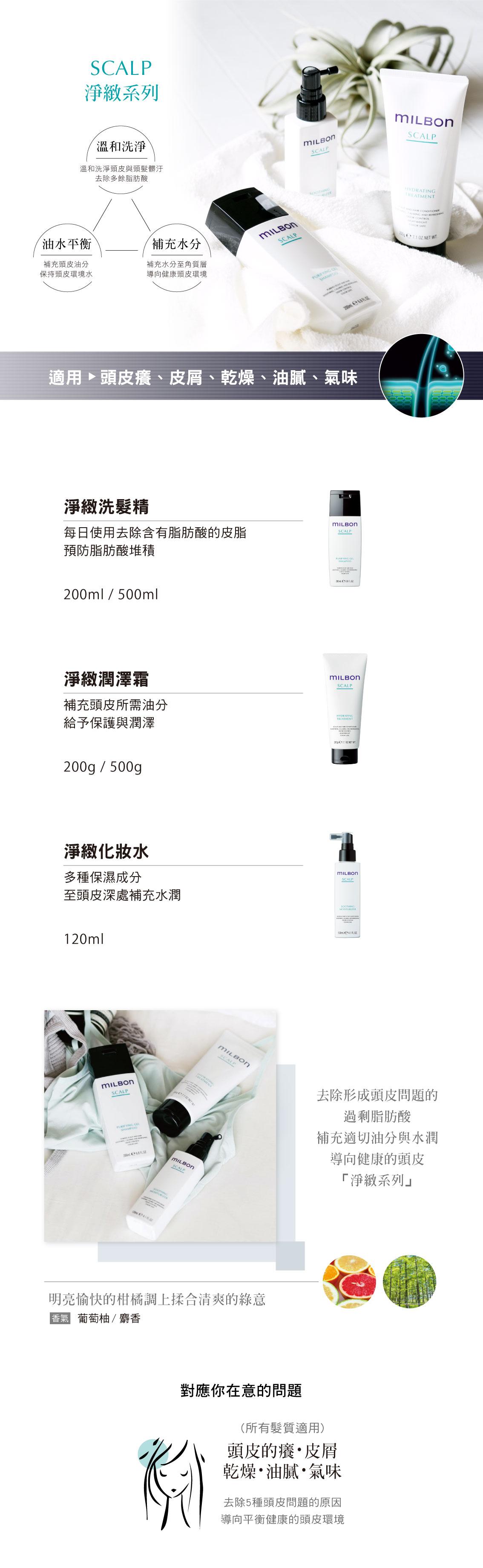 洗淨成分溫和去除形成5種頭皮問題導致的過剩脂肪酸, 多種保濕成分補充適當油分與水潤, 導向健康頭皮環境。